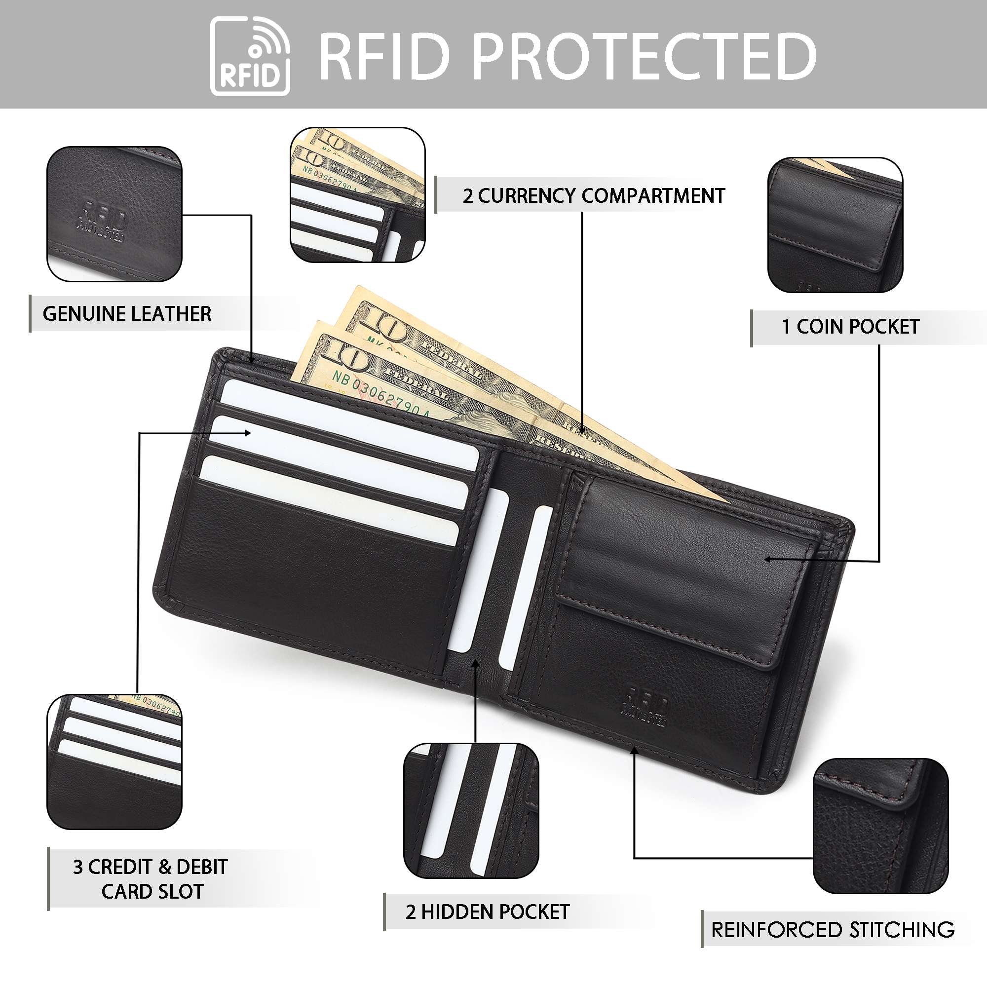 2) RFID protected to keep data safe from E-theft.