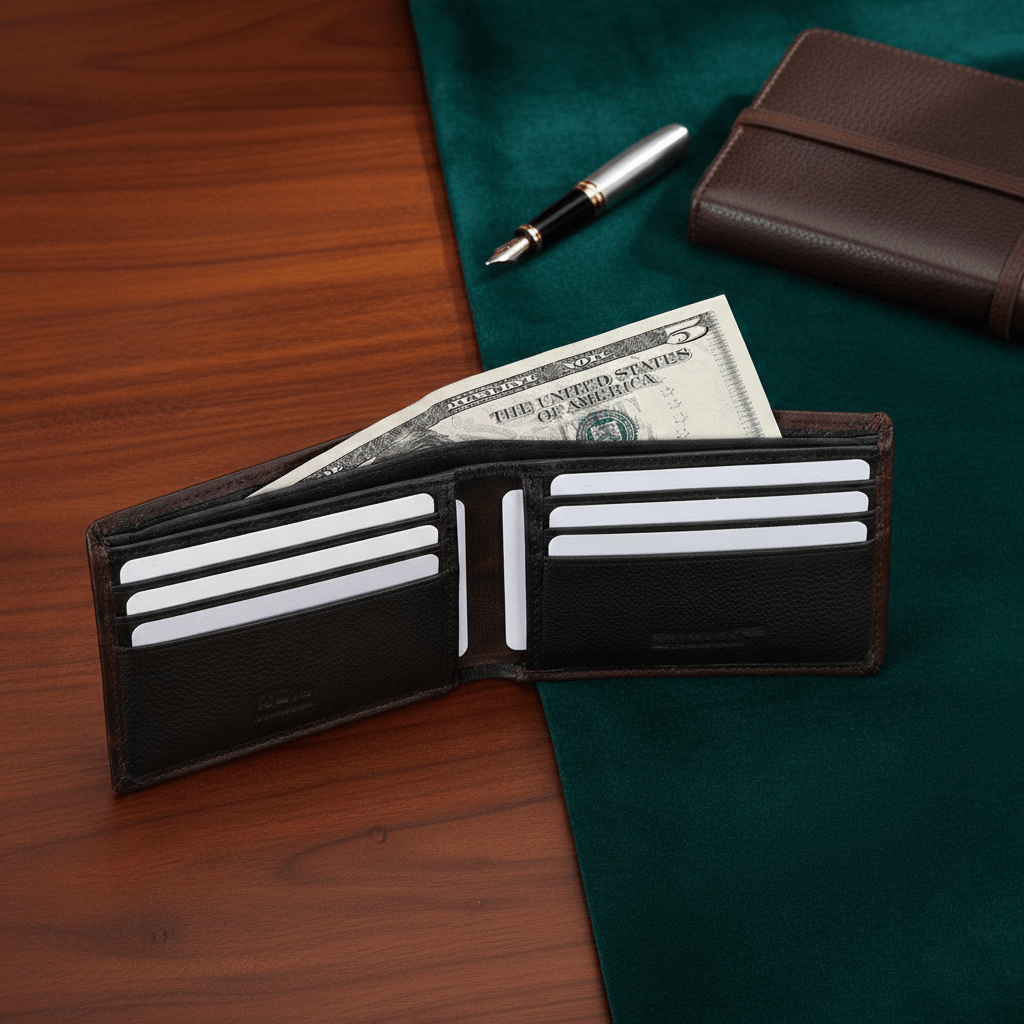 This wallet is like a cosy leather burrow for your cards and cash, stitched from hearty full-grain hide that only gets better with age. It comes with a clever RFID shield to keep digital pickpockets out, 8 card slots, cash and card space — all wrapped in a tidy bi-fold that slips effortlessly into your pocket. Proudly made in India and boxed like a gift, it’s wallet magic that’s both practical and a little bit posh.