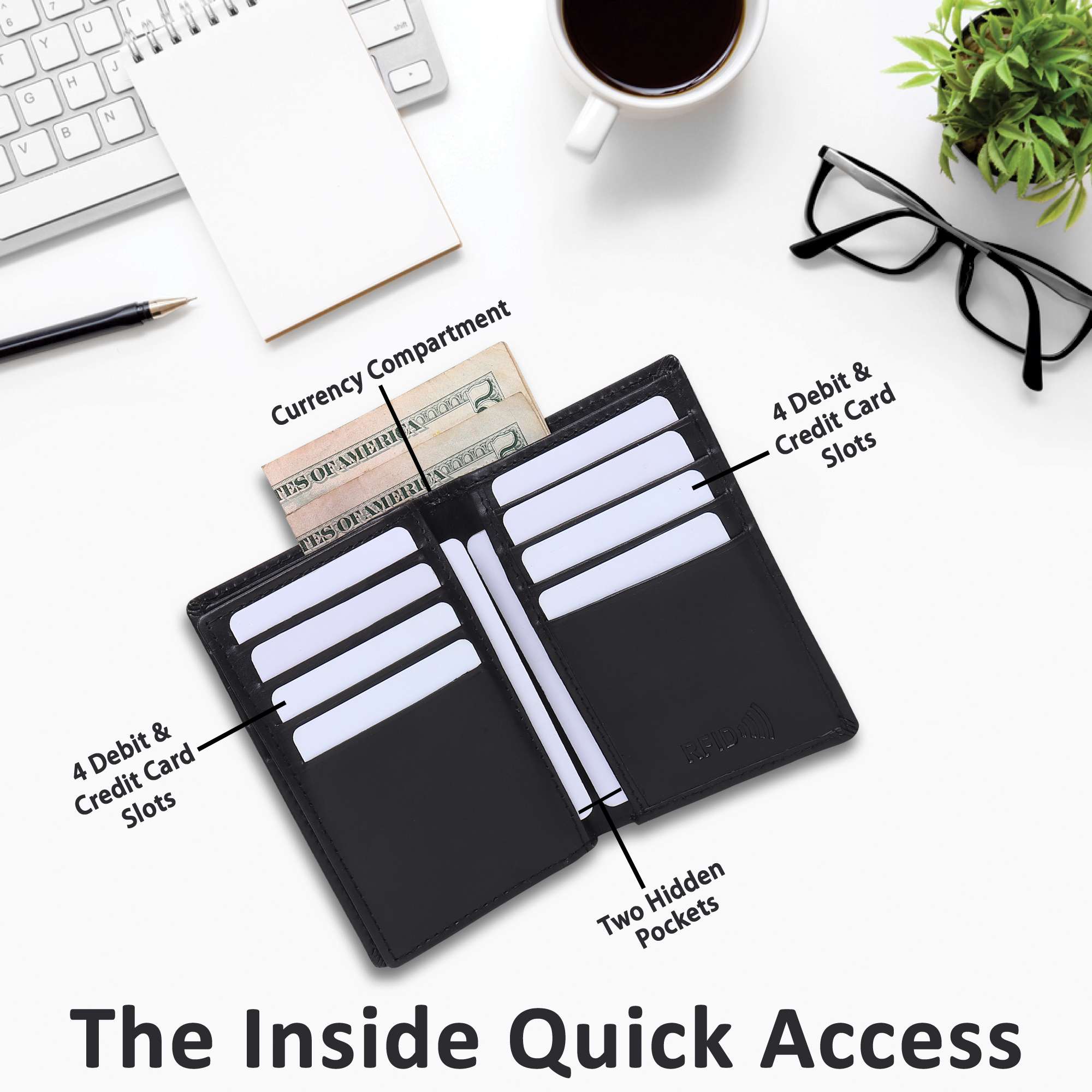 TALLBOY Vertical Bifold Leather Wallet | RFID Protected | Multiple Card Slots (16 Card Slot)